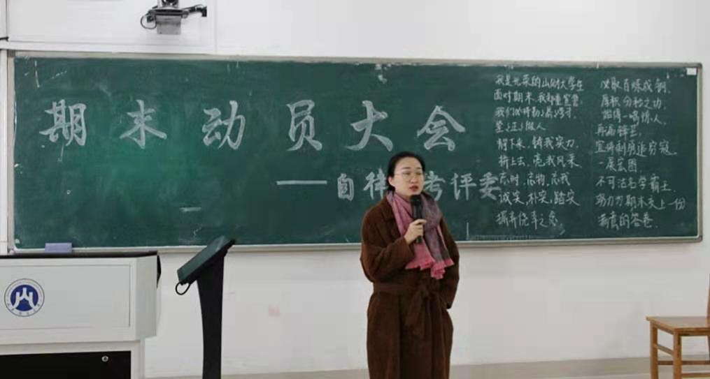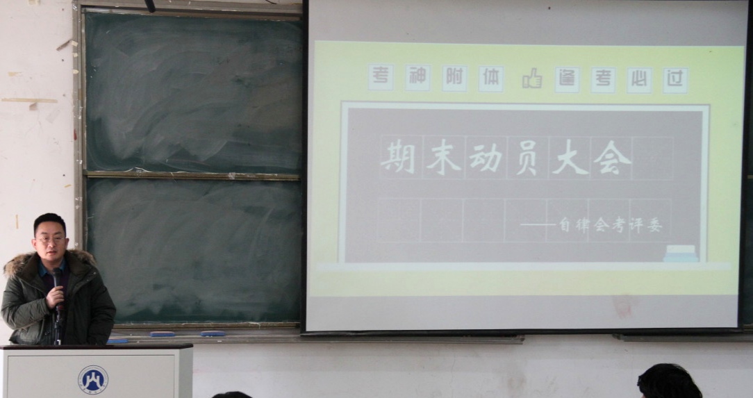 在同学们热烈的掌声中,本次动员大会拉开了帷幕。曹同锋老师对同学们高涨的学习劲头表示了充分的肯定,同学们不仅保持着较高的学习热情,而且维持着很高的课堂出勤率,不落下任何一节课。曹老师希望大家能高度重视此次期末考试,全身心地投入到复习中,为自己大学四年的生活写下一个完美的开端。随后曹老师根据历届学生的学习经验向同学们传授了学习方法,他认为只要大家找到正确的学习方法,恰当地采用题海战术,保证足够的学习时间,一定能够在此次考试中取得优异的成绩。最后,曹老师嘱咐同学们要合理分配复习时间,积极备考,为期末考试做好全面的准备。