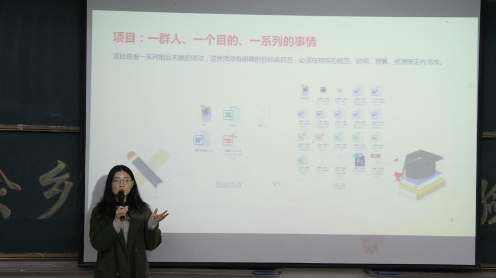 在介绍备赛经验环节中,宋婕钰同学从项目梳理、团队协作、备赛进程三个方面讲述了整个参赛过程中需要注意的事情。她认为参赛项目比校园活动更加多样化、复杂化,因此,在创建项目前进行一个详细的项目梳理是必不可少的。宋婕钰又从负责人和团队成员两个角度阐述了团队协作的重要性。作为团队负责人,要制定详细的计划、组织好活动进程、赢得队员认同,团队成员要“做正确的事,正确地做事”,双方一起实现效益最大化。