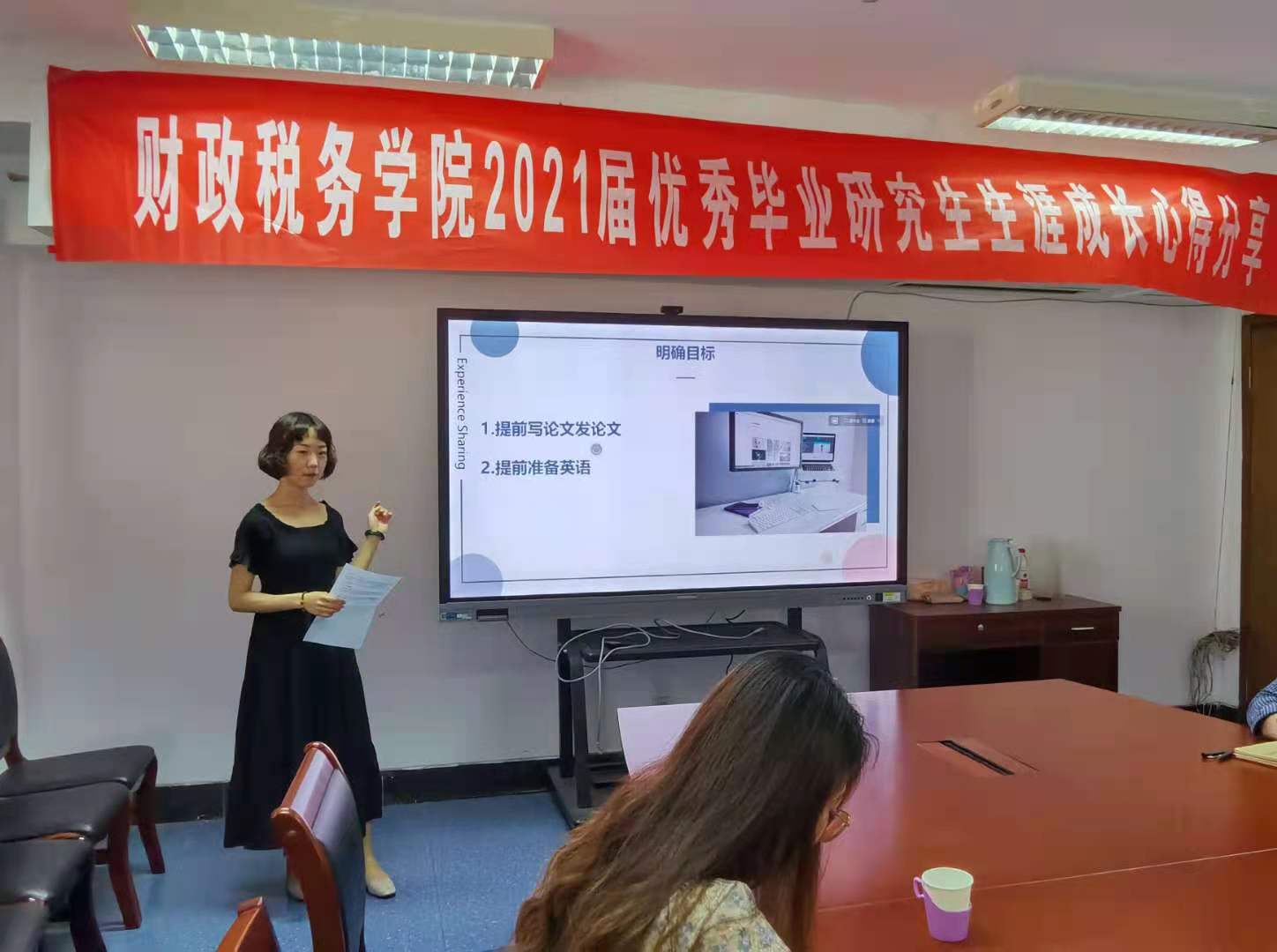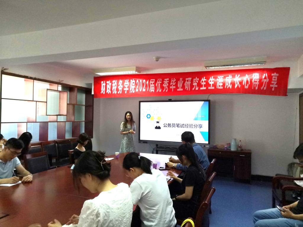 毕业年级优秀研究生袁月和费遵颖为大家进行了考博与考公的经验分享,财税学院税务硕士教育中心主任兼副院长李森老师出席了本次活动。