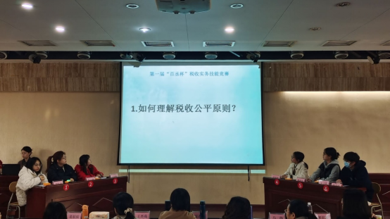 比赛过程中,参赛选手们沉着冷静、一丝不苟,对税收基本理论、我国税收制度现状、未来财税改革方向和具体完善措施等知识烂熟于心,作答自如,赢得了评委老师和同学们的阵阵掌声,展现了财税学子们严谨踏实的专业素养、扎实娴熟的操作技能和昂扬向上的精神风貌。伴随着选手们一下午的精彩较量,比赛进入尾声。颁奖典礼上,百丞税务合伙人田峥峥女士从专业视角对选手们的表现逐一进行了精彩点评,并宣布最终获奖名单。在热烈的掌声中,莅临现场的各位领导、专家评委亲自给荣获一、二、三等奖的选手们颁发荣誉证书。在大家的热烈掌声中,比赛圆满落下帷幕。