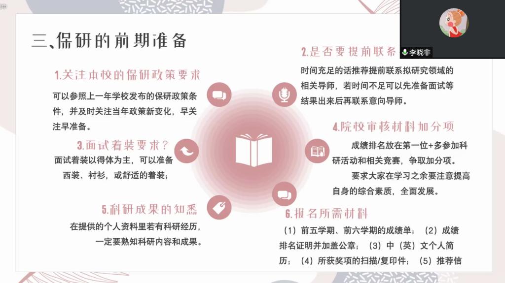 学习部承办。此次活动旨在帮助同学们更好地做好考研规划和解答考研过程中的疑惑,为同学们指明考研方向和奋斗目标。2018级获得推免资格的和考取各院校硕士研究生的学生代表受邀出席本次活动,2019级、2020级部分同学参与本次活动。