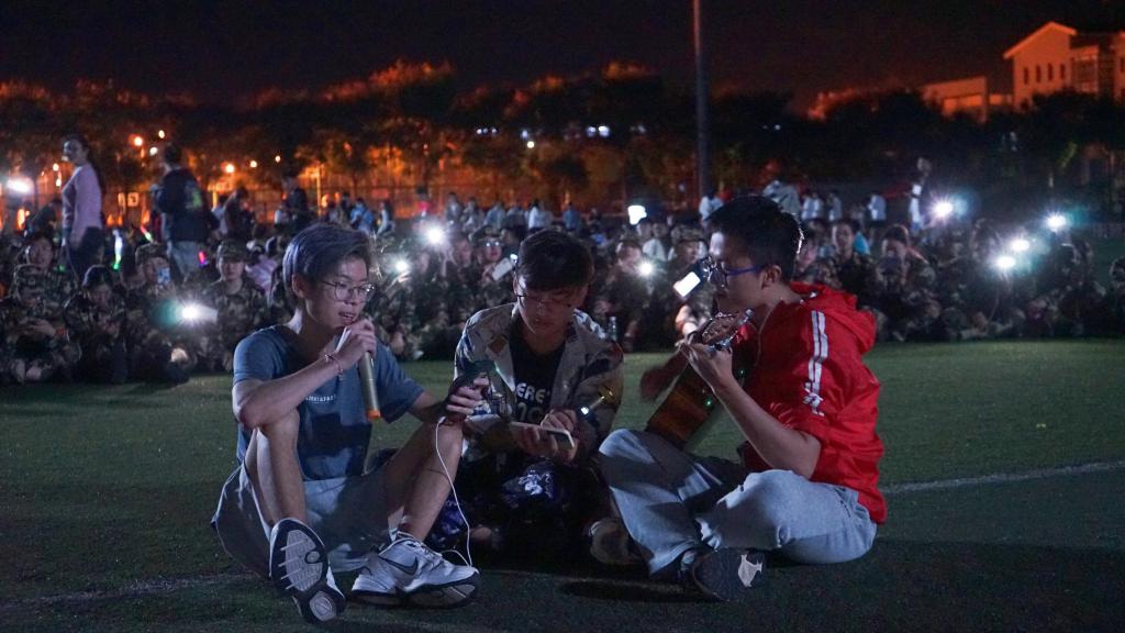 9月21日,正值中秋佳节,2021级新生们在结束了一天的军训项目后,来到操场与学长学姐们共庆中秋。大家围坐在操场上,2021级的同学们争相报名表演节目,有的同学带来了自己的吉他,优美的旋律在操场上飘扬;有的同学表演了一段舞蹈,曼妙的舞姿将联谊的气氛推向高潮。面对如此活跃的气氛,学长学姐们也情不自禁的加入了联谊,一位学长即兴表演了一段快板;来自学院艺术团的学长学姐们表演的舞蹈获得了阵阵欢呼,2021级的同学们挥舞着手中的荧光棒表达着自己心中的喜悦与激动,掌声一阵高过一阵。
