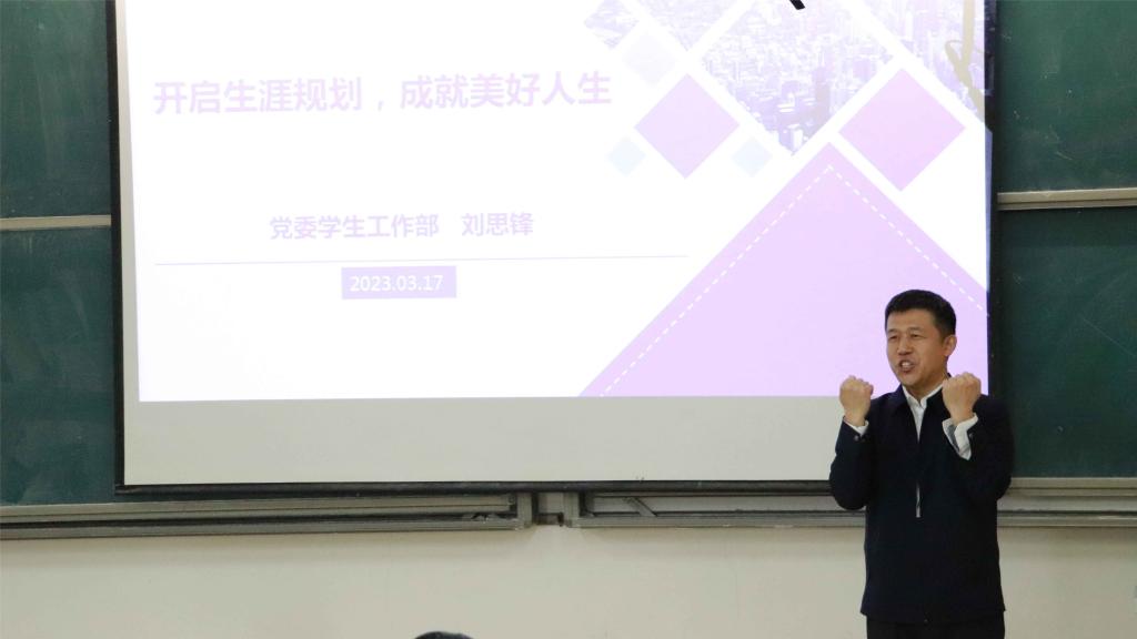 党委学生工作部副部长刘思锋为同学们带来一场题为“开启生涯规划,成就美好人生”的生涯规划主题讲座。本次活动在圣井校区弘毅楼111教室圆满举行,讲座由刘思锋副部长主讲,李子云老师主持,2022级部分学生代表参加本次讲座。