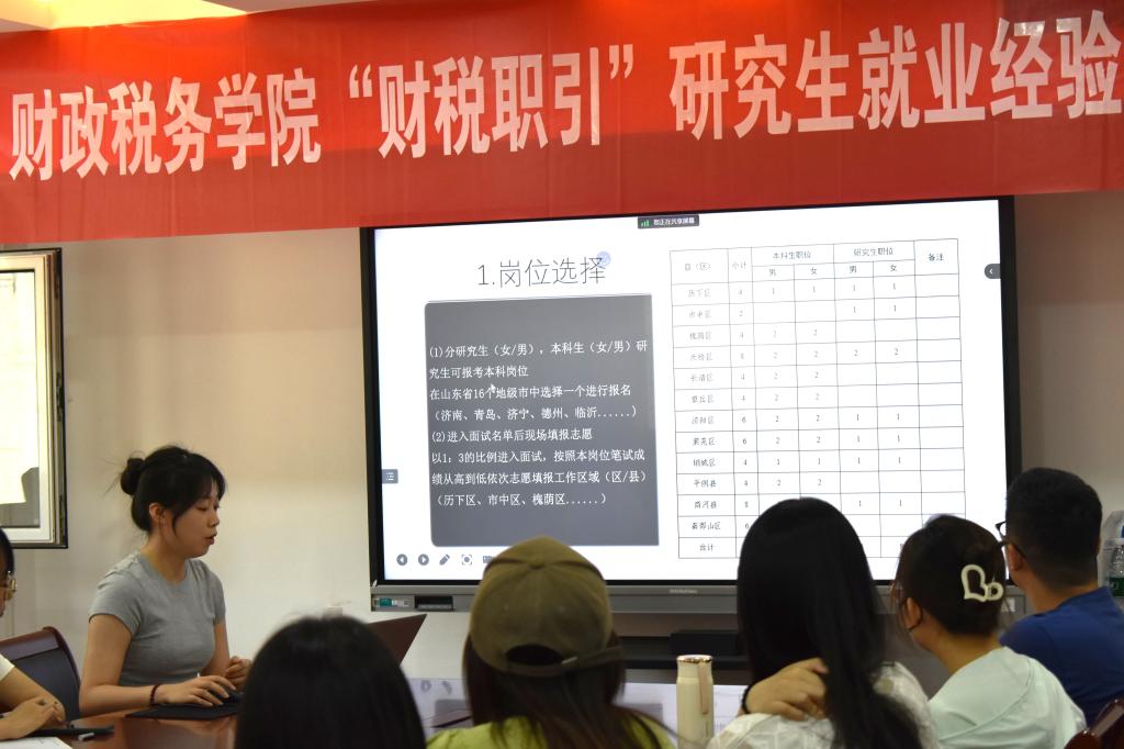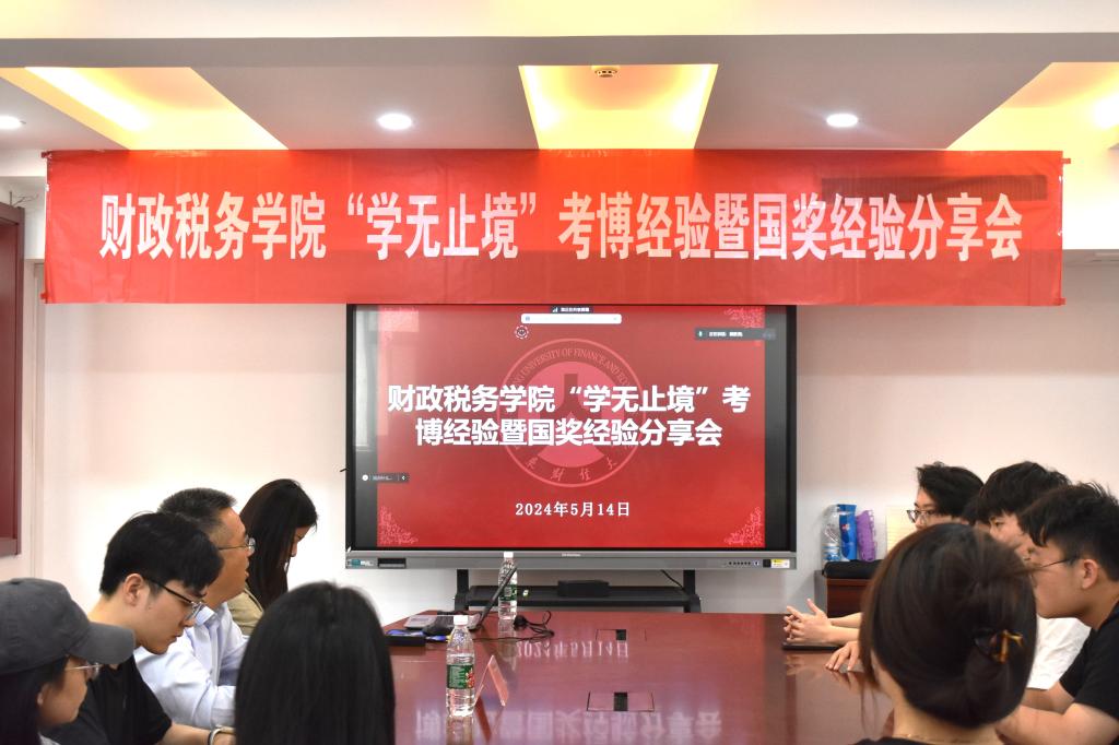 于5月13、14日上午在办公楼816举办“财税职引”研究生就业经验交流会和“学无止境”考博经验暨国奖经验分享会。李敏、刘浩等多位学长学姐分别就升学、就业进行经验分享,学院党委副书记张代宝,团委书记、研究生辅导员王正一出席活动并讲话,2022级财政学硕、2023级税务专硕部分研究生参与交流。