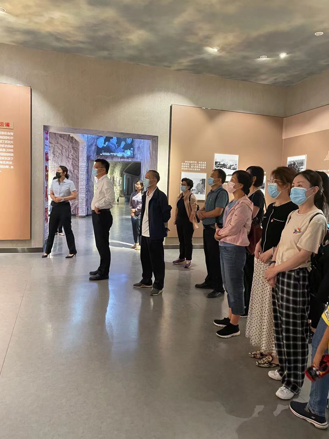 在讲解员的带领下,大家认真听取并参观主展馆及实景生产车间,通过对“遥望崮乡、红色印痕、风雨春秋、挺进大山、无声战场、苦乐年华、情满热土、魂铸青山”八个版块的学习,了解了老一辈共产党员坚定理想信念,不怕苦、不怕累、艰苦奋斗的感人历史,深深为山东小三线工人“革命加拼命,苦干加巧干,掉它十斤肉,留它几身汗,完不成任务不下火线”的精神所震撼。参观结束后,全体党员面对党旗再一次举起自己的右手,庄严的向党组织宣誓,重温入党誓词,重温当年入党的决心和信念,更加深了对党的热爱,也让我们明白要不忘初心,始终铭记入党的誓言。