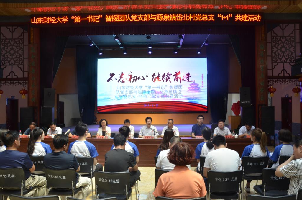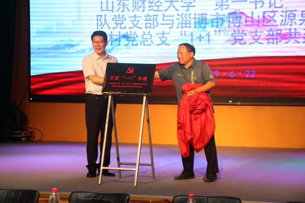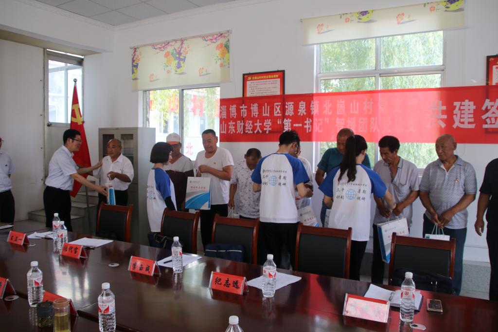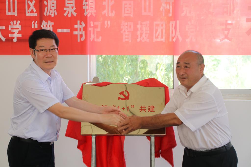 “第一书记”智援团队党支部与淄博市博山区源泉镇岱北村党总支、淄博市博山区源泉镇北崮山村党总支共建揭牌暨图书捐赠仪式。