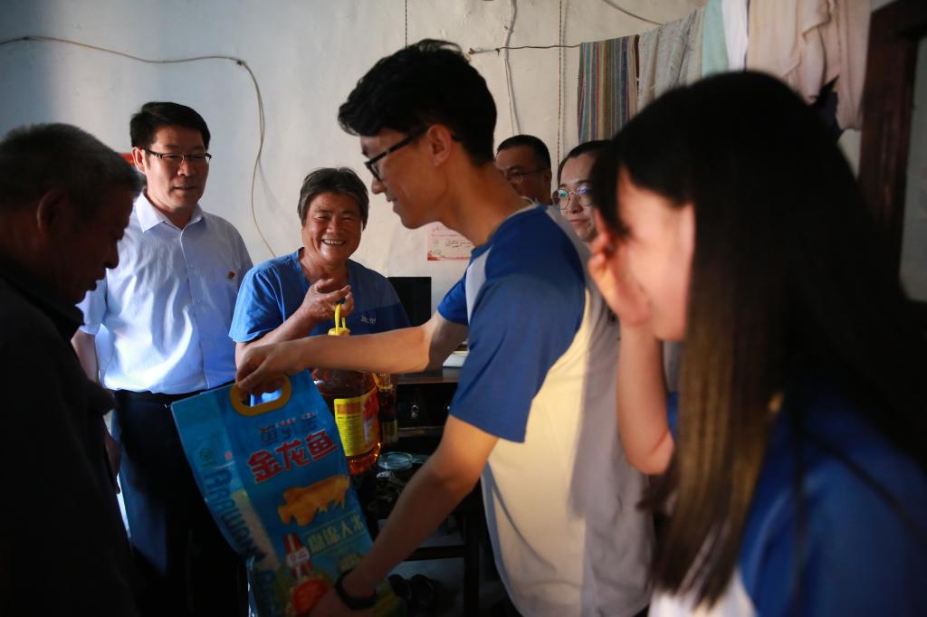 学院师生看望了岱北村、北崮山村老党员,为他们送去了米、油、牛奶等慰问品。老党员向队员们介绍了自己是如何成为一名光荣的共产党员的故事,还向同学们介绍了自己家族的红色历史。听了老党员的故事,同学们备受感动,纷纷表示深切感受到今天幸福生活来之不易,愿为社会主义建设添砖加瓦。