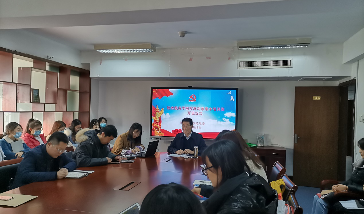 3月8日上午,海角社区app 党员发展对象集中培训班开班仪式在舜耕校区办公楼816会议室顺利举行。学院党委书记李玉成出席开班仪式并发表讲话。学院团委书记研究生辅导员王正一2017级税收学辅导员李建永,2017级财政学辅导员郭滨滨和期全体党员发展对象参加开班仪式。开班仪式由学院专职组织员李子云主持。