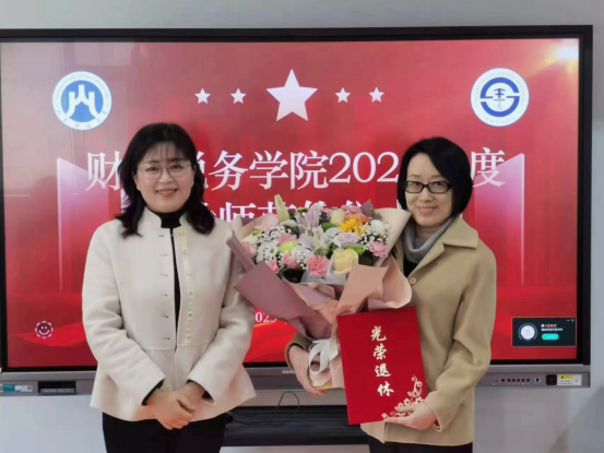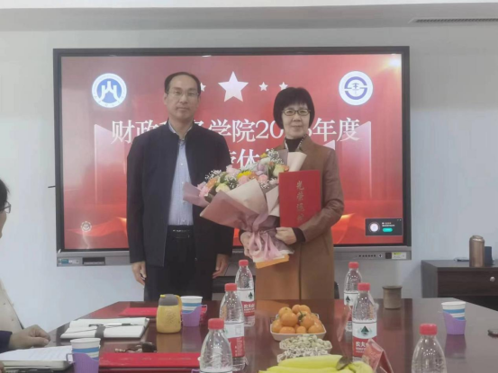 2023年退休教师荣休仪式在办公楼816会议室举行。退休教师梅丽萍、张琳、董建英、邱伟春受邀参加仪式。财税学院党委书记刘波,院长李森,党委副书记张代宝、滕晖,副院长赵宝廷出席仪式。学院部分教师代表参加仪式。仪式由党委副书记张代宝主持。