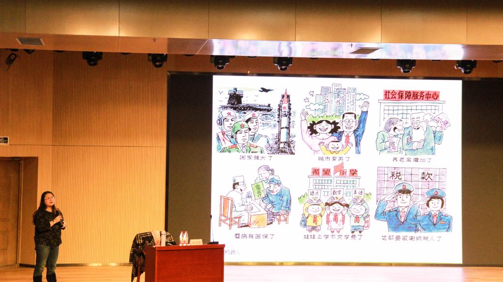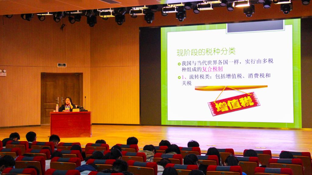 本次讲座以“税收与经济生活”为主题。高凤勤老师结合自身实际和一些娱乐圈的税收现象,引入了本次讲座的主题,她用风趣幽默的语言,充分调动了同学们参加本次讲座的积极性。